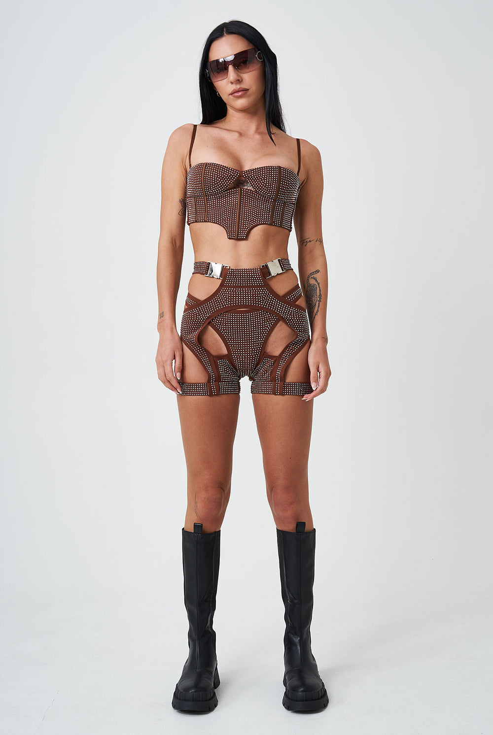 This bubble skirt brings major sparkle energy. Made from our custom thick cotton spandex blend, it has all-over rhinestone shine and stretch that moves with you. The elastic waistband and hem keep the fit secure and it’s fully lined to maintain that perfect bubble shape from every angle. Pair with the matching Dark Desires Lace-Up Corset to complete the look.