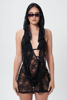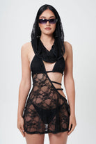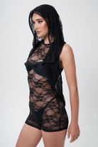 The Mindwave Lace Hood is made from our custom rhinestone lace fabric to give it an extra sparkle. It is made to be paired with our Dreamstate Dress or Lust & Lace Bodysuit to level up your outfit at your next festival or doof.