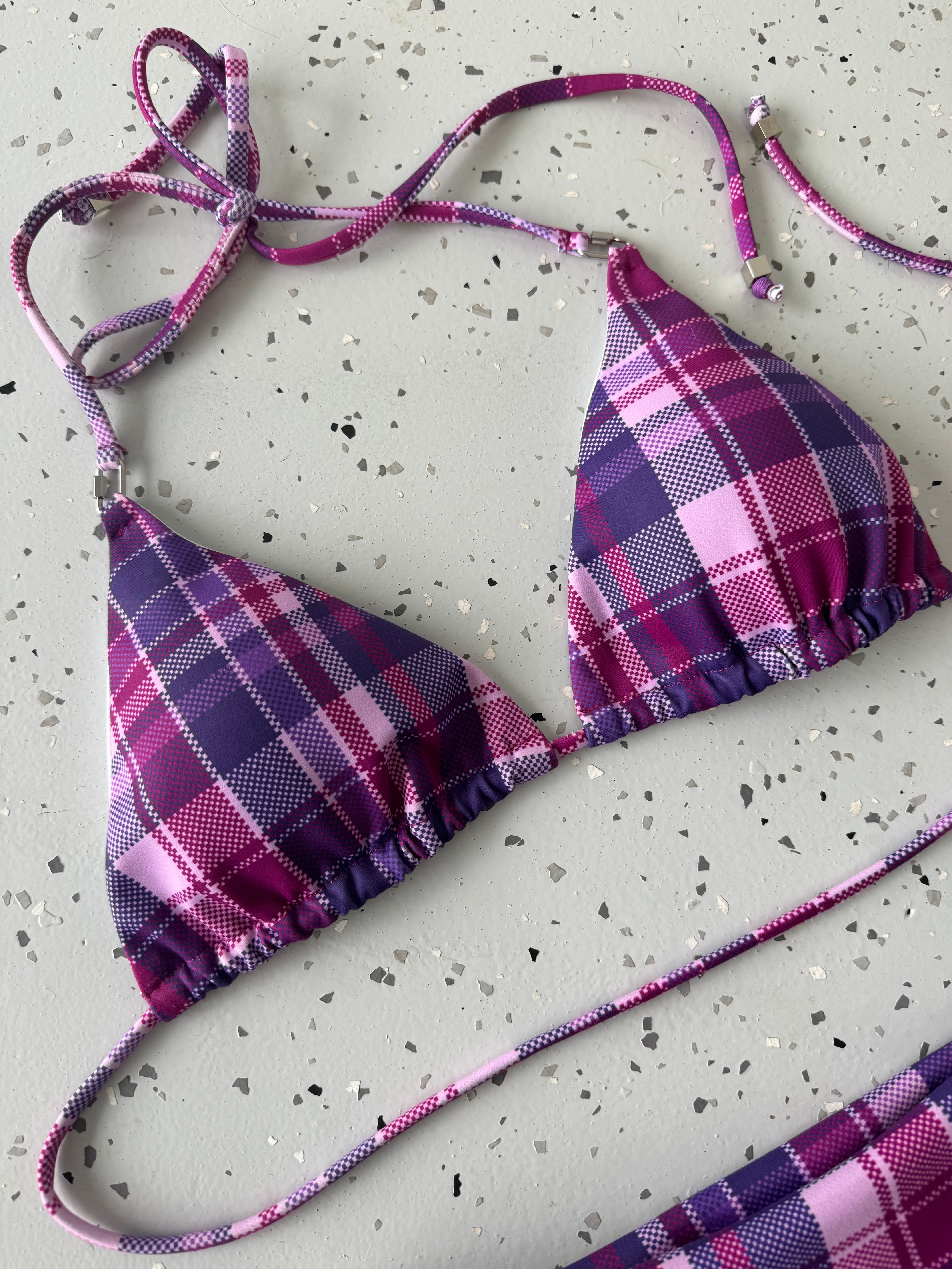 Locked In Plaid Bikini Top - Purple