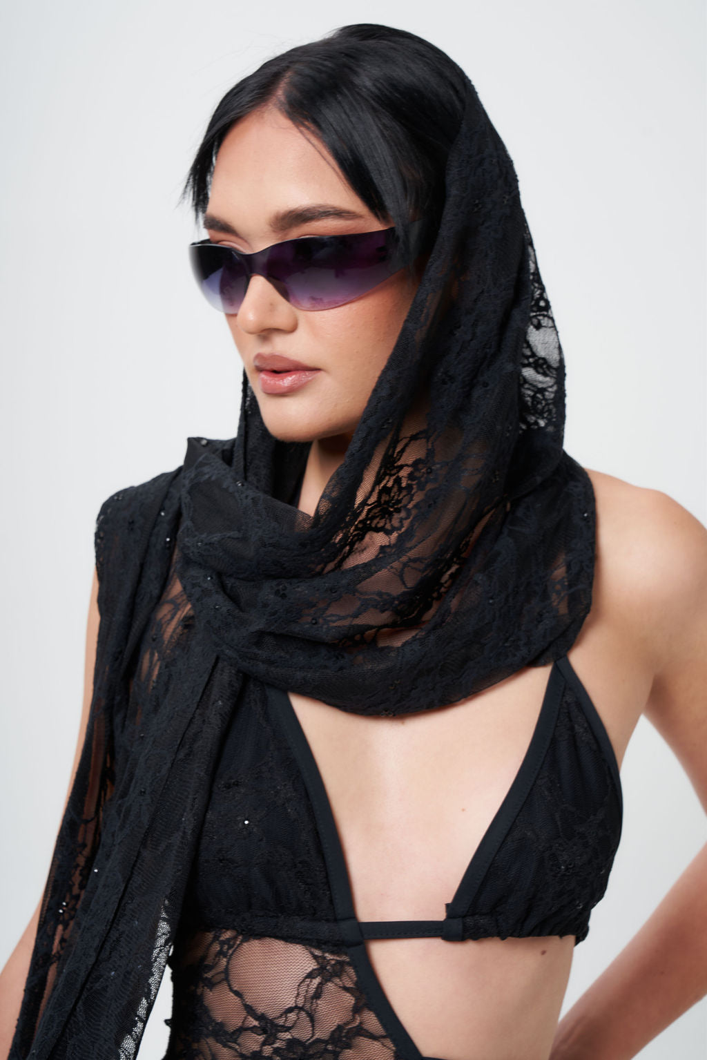 The Lust & Lace scarf is made from our custom rhinestone lace fabric to give it an extra sparkle. It can be styled in so many different ways. It can be worn over the top of the bodysuit as a skirt or around the neck to protect you from the dust at your next festival or doof.